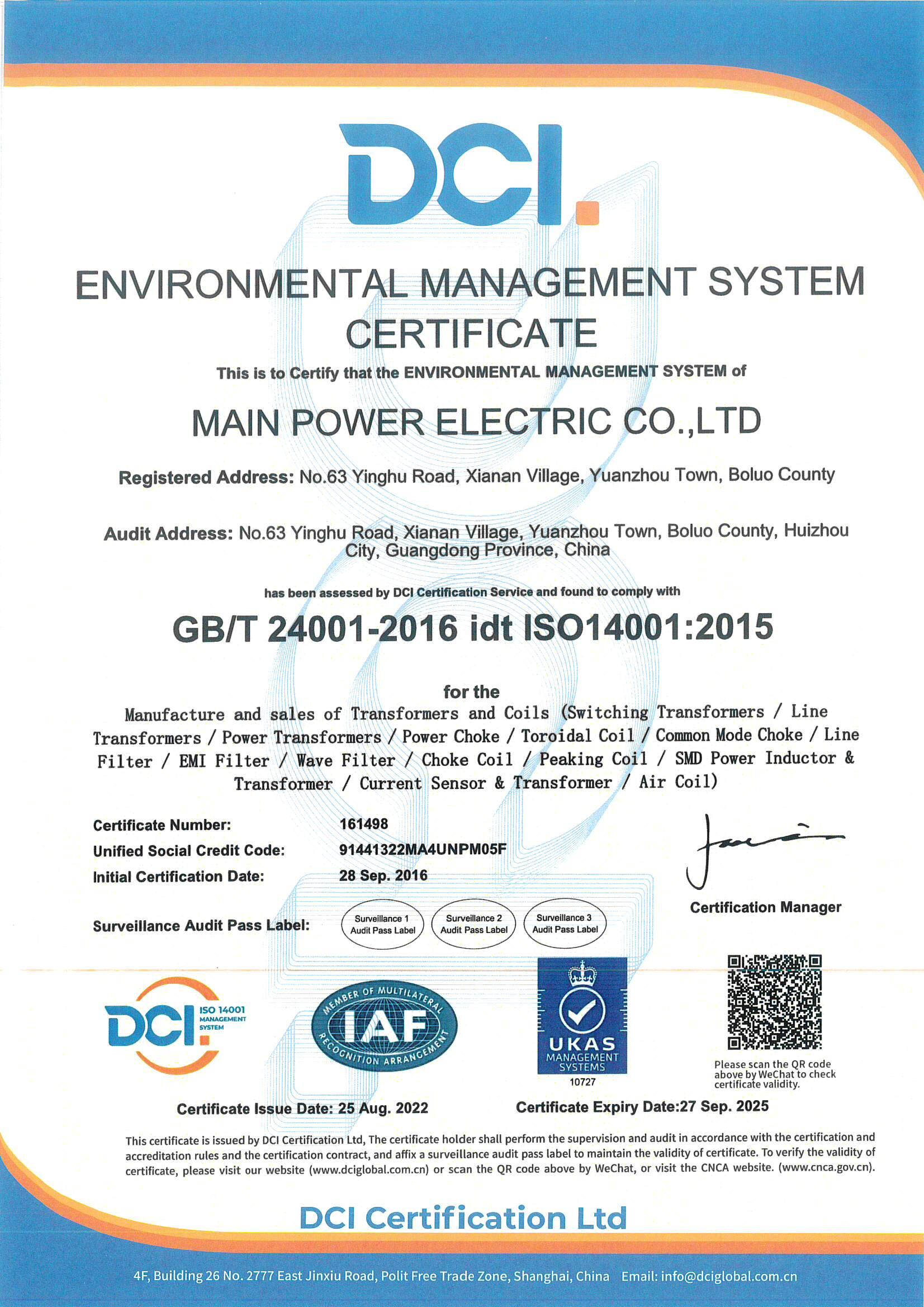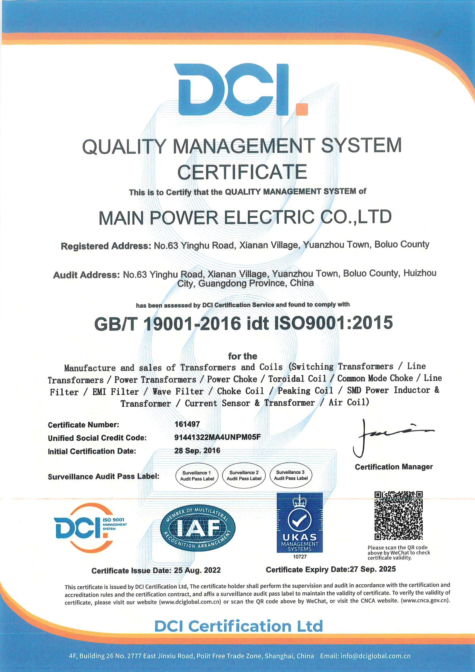 Inductor Certificate No.: 2022-DK-03011 ~ 2022-DK-03018